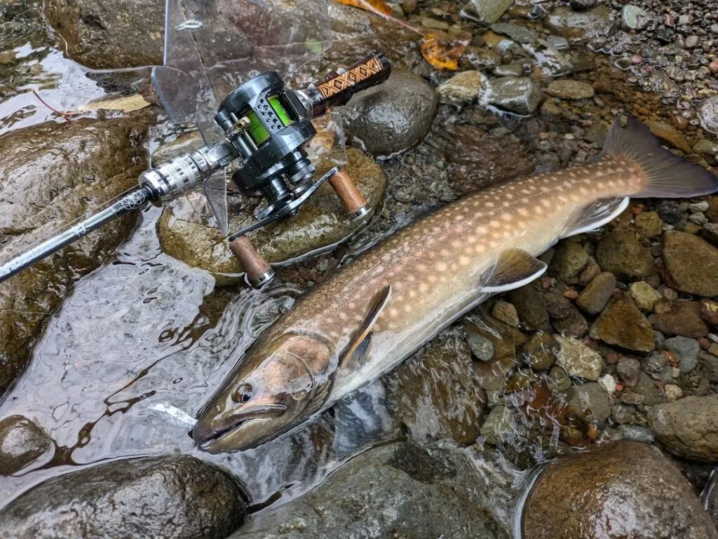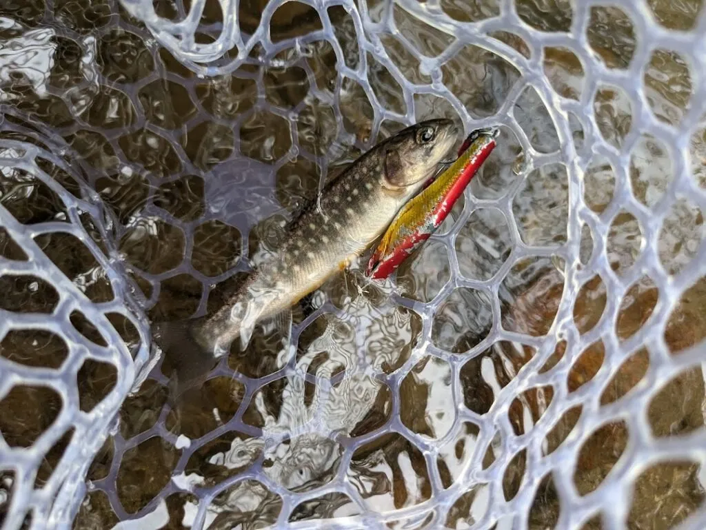 10cmちょっとの魚でも果敢に5cmのルアーにアタックし、イワナの獰猛さを実感。