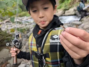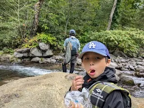 チビ岩魚の反応すら無くなり、息子と小休憩。