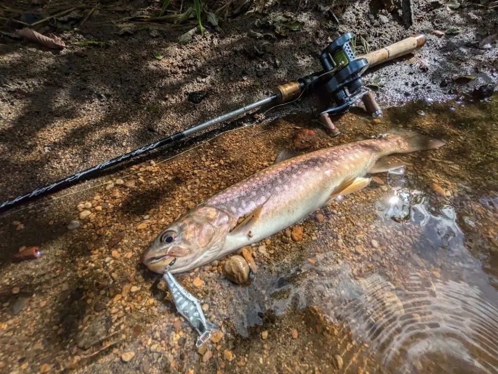 アメマスのようなイワナのような小型のトラウトはちょくちょく釣れるのですが、良型サイズが中々出ず・・・。
