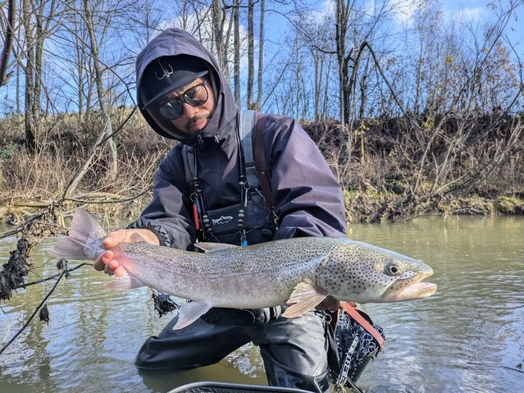 今回はイトウ・デカアメマスと大型トラウトを求めて旭川アングラーのマサさん、ノジさんと釣りです。