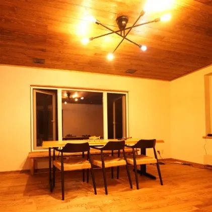 滞在スタイルに合わせて選べる二名用と四名用の個室を用意しており、広々とした共有スペースでゆったりとお寛ぎいただけます。キッチンには家電や食器類も完備しているため、お住まいのようなリラックス空間でのんびりと過ごしたい方にも適しております。自然を楽しむアクティビティーだけではなく、空港でのピックアップから宿泊場所の提供まで網羅したサービスをご提供いたします。